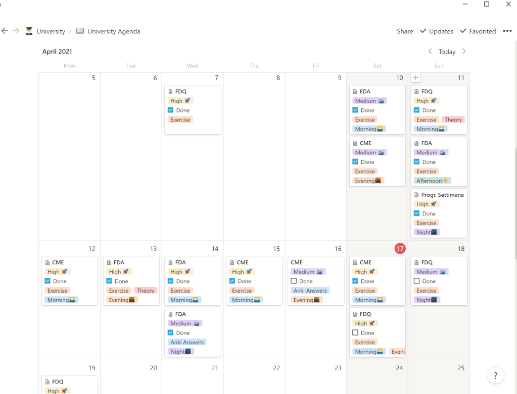 - nomino ogni attività con la sigla della materia corrispondente (ad esempio, CME = Circuiti e Misure Elettroniche), in modo da non perdere tempo a scrivere ad esempio “Compiti di Circuiti”;