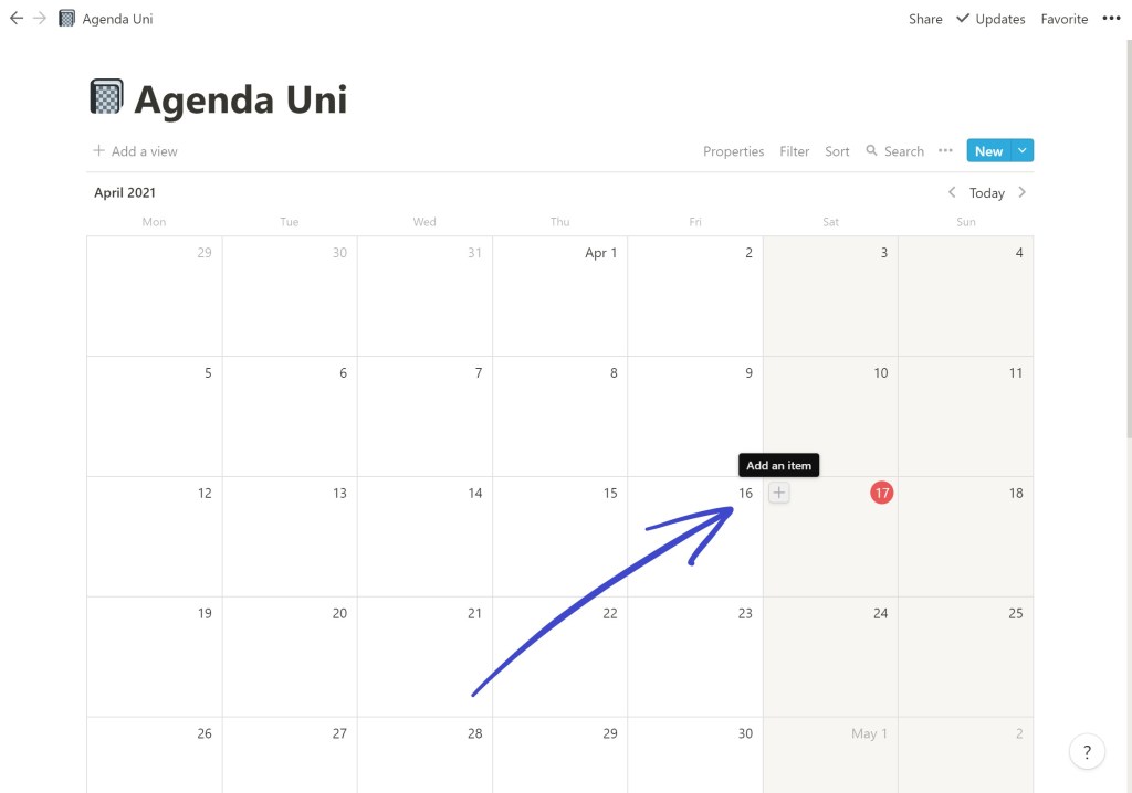 Benissimo! La nostra agenda sta prendendo forma anche senza carta igienica e colla vinilica. Ora siamo pronti per aggiugere il nostro primo impegno, che consiste in alcuni compiti di matematica: per farlo andiamo sulla data del giorno desiderato e clicchiamo su “Add an item”➕: